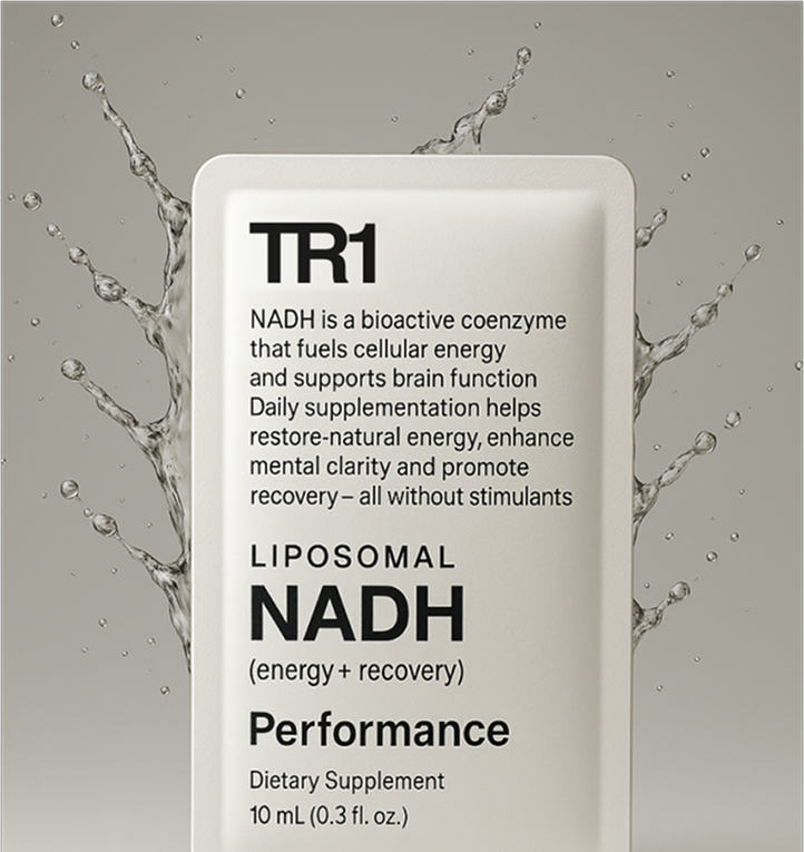 TR1™ is a liposomal formula powered by NADH, a bioactive coenzyme essential for metabolic processes, proper cognition, clinically tested and scientifically backed. It supports mental focus, energy, and physical performance at the cellular level.